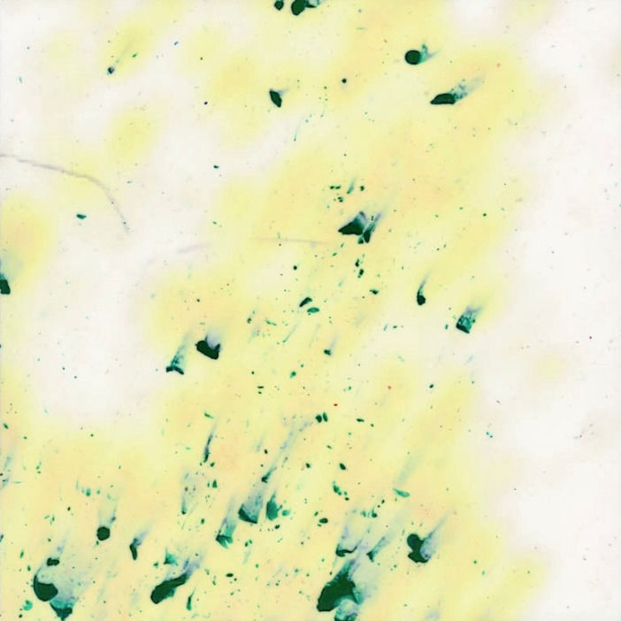 Streaks of green scatter within waves of light yellow, recalling sparks of growth across a brightened sky. Formed from recycled HDPE, it weaves vibrancy into circular design.